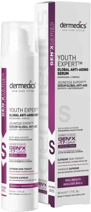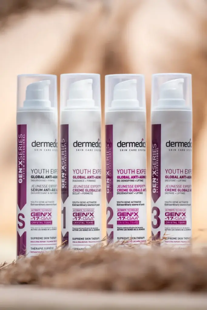 A DERMEDICS GEN’X termékcsalád tudományosan bizonyított hatóanyagokkal támogatja a bőr feszességét, hidratáltságát és megújulását a 30+, 45+ és 60+ korosztály számára.